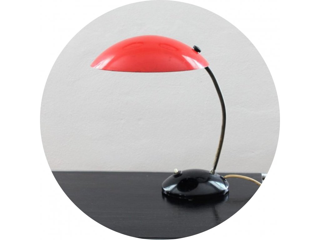 Originální červeno-černá kovová stolní lampička vyrobená v 60. letech společností Drukov. Lampička je v dobrém stavu - viz foto. Kov, plast.